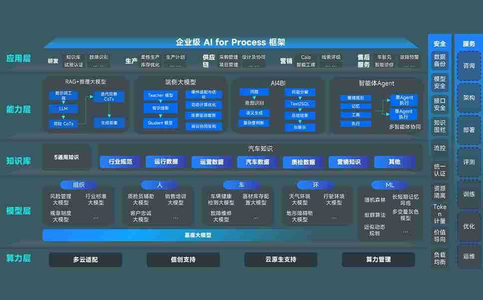 优游UB8问学智车解决方案是一套基于AI技术的汽车行业智能化系统,,,,覆盖从底层算力到顶层AI应用的全栈方案。。方案由算力层、、模型层和应用层组成:算力层,,,,方案支持多种一体机配置,,具备云端灵活部署、、、、多云适配以及动态优化计算资源的能力;模型层,,优游UB8问学平台版提供了企业级AI应用一站式构建与管理平台,,,,支持基于后训练强化技术的汽车企业专属模型的训练、、评测和运营;应用层,,,,优游UB8问学DeepSeek版提供包括超级员工、、智能招采、、、、智能营销、、、、智能客服、、、AI for BI等一系列解决方案,,,,可助力汽车行业实现数字化转型,,,,让管理更智能、、、响应更敏捷。。。。